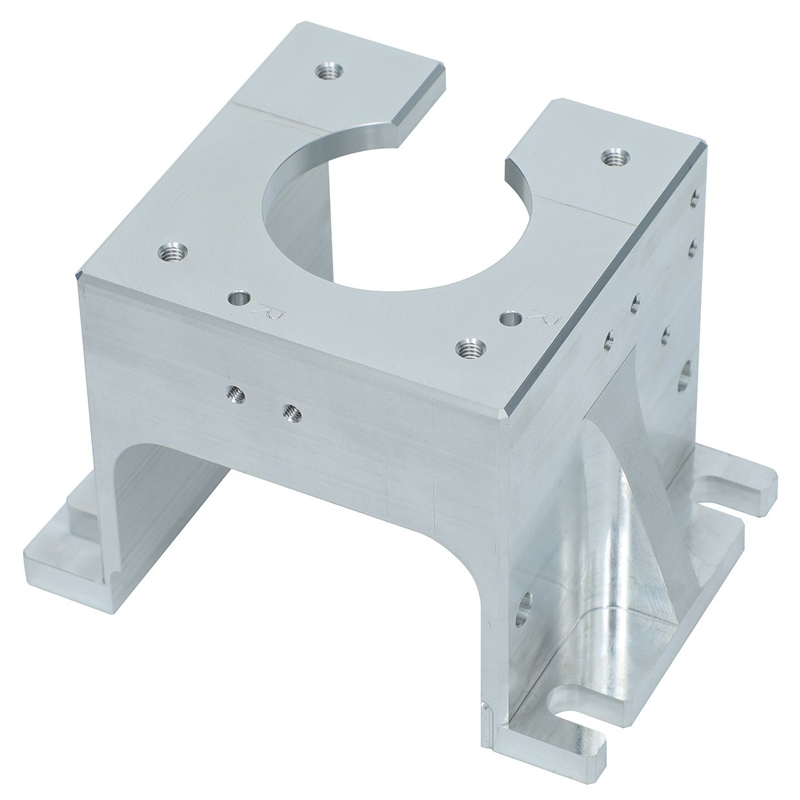 Manufactured from high-quality aluminum (such as 6061-T6 or 7075-T6), the part is fully processed by advanced CNC milling to ensure excellent dimensional accuracy, surface finish, and structural integrity. The integrated split clamp (C-type opening) design allows for easy installation and secure clamping of cylindrical components such as motor housings or spindle bodies, eliminating the need for complex assembly procedures.